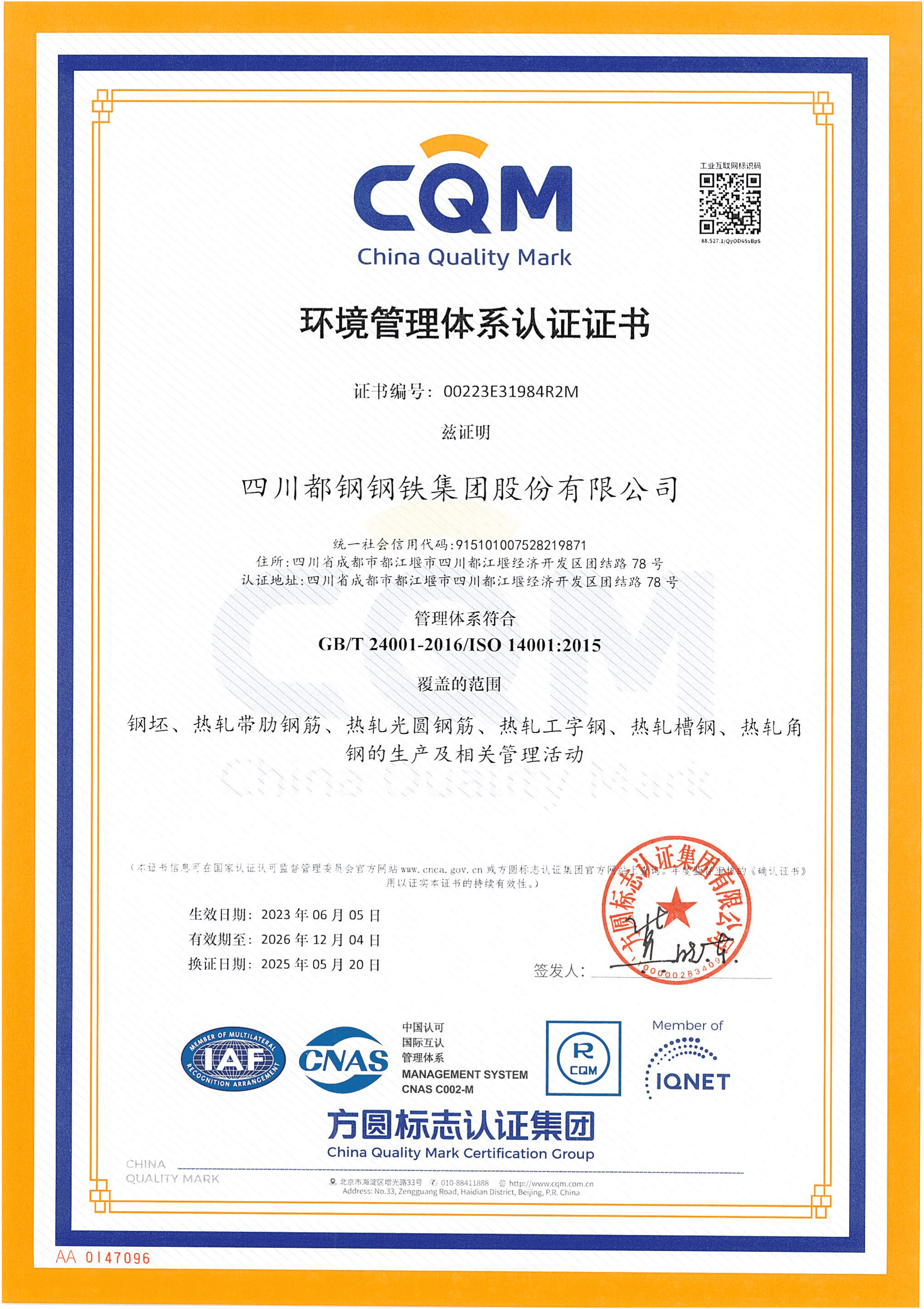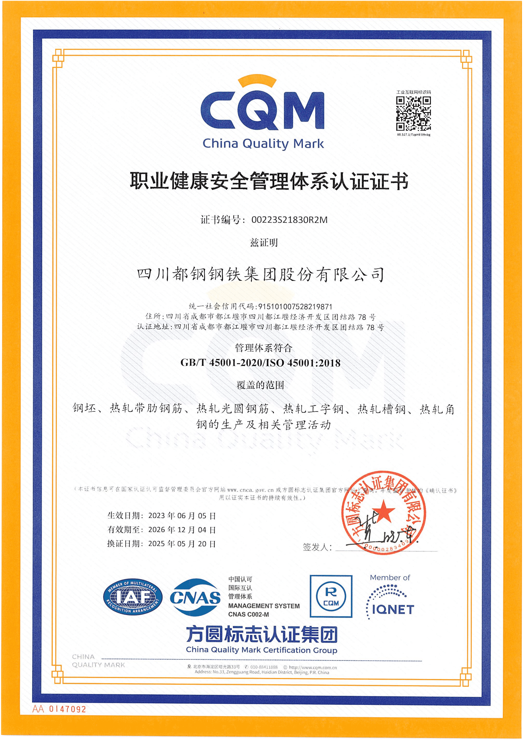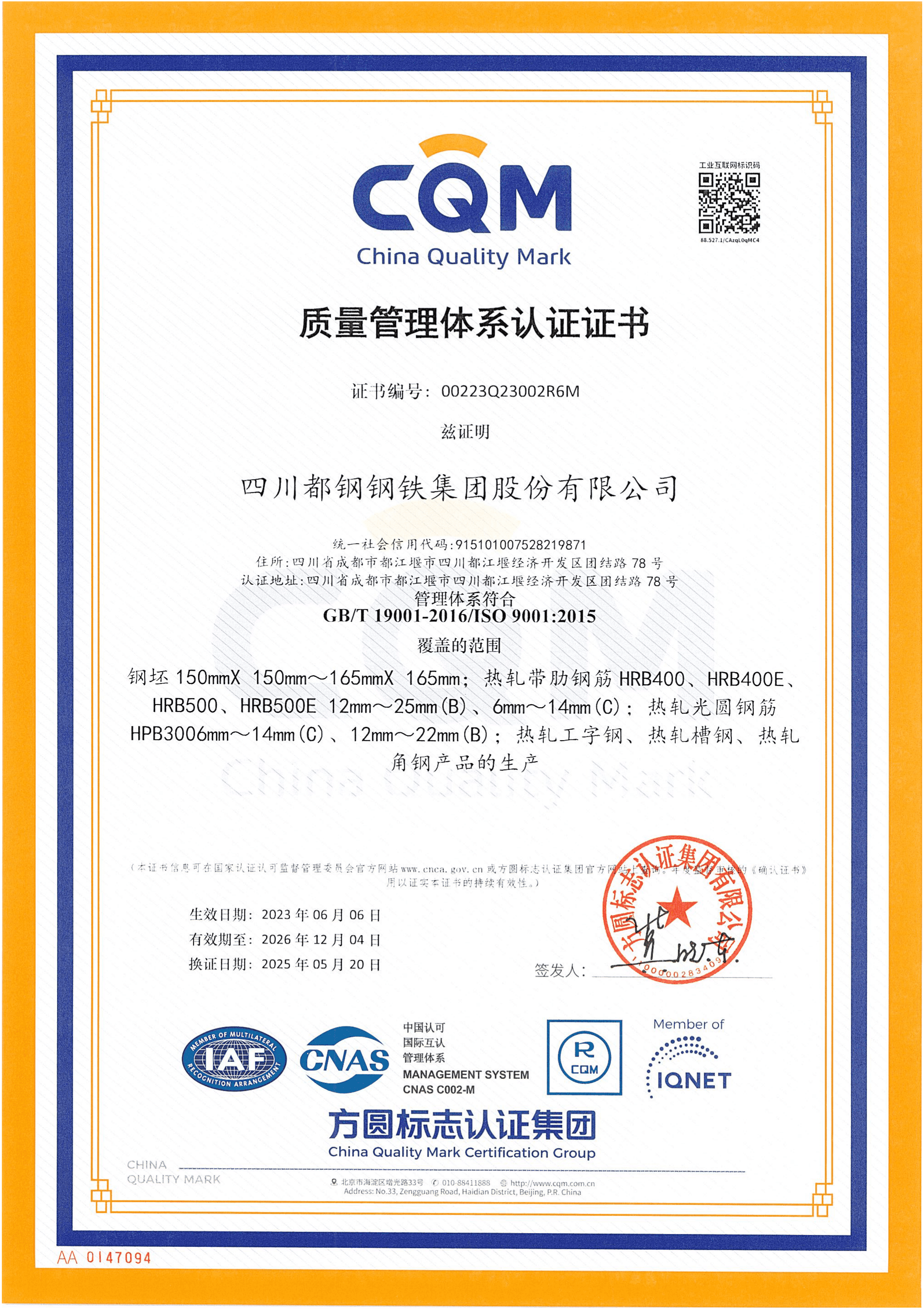 公司是成都市上规模企业、都江堰市历年纳税大户,荣获都江堰市2017年度“绿色科技制造业十强”企业、“成都市重点民营企业建立现代企业制度达标企业”、 “四川民营企业100强(2020)”、“四川省绿色工厂”、“国家绿色工厂”、“省级节水型企业”、成都市及四川省“环保良好企业”。 公司建筑用高强度钢筋产品,历年来经国家、省、市抽查均合格,自2012年起连续进入“成都市名优产品推荐目录”、“2020年成德眉资地方名优产品目录”、 通过“冶金产品认证”、“ MC认证质量品牌”等多项荣誉。产品广泛用于铁路、公路、桥梁、水利、电站和民用等大型、高层建筑,从未发生过重大产品质量事故,具有良好的市场声誉,在市场上畅销并深受用户好评。